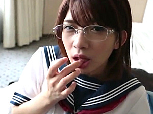 ポッチャリ巨乳のパイパンJKが連続フェラ抜きでメガネ顔射!さとう愛理