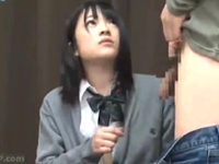 撮影の合間にADくんを痴女っちゃう美人JK。「すごいビンビンだよ〜すごい先っぽがパンパンになってきた〜」黒パンストで足コキ責めと言葉責めする美人JKにタジタジのM男スタッフ。紺野ひかる出演作品。